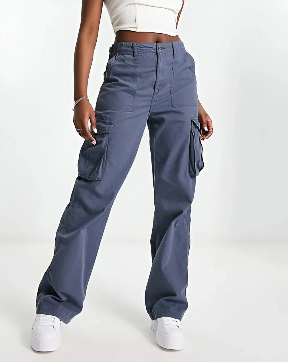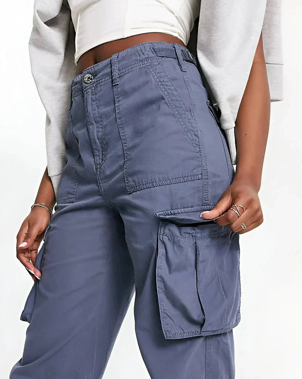 Vær komfortabel og stilig med vår Cargo Elvira-bukse med justerbar midje. Enten du skal ut på byen, gå en tur eller nyte hjemmets bekvemmeligheter - du kommer til å elske dette plagget.