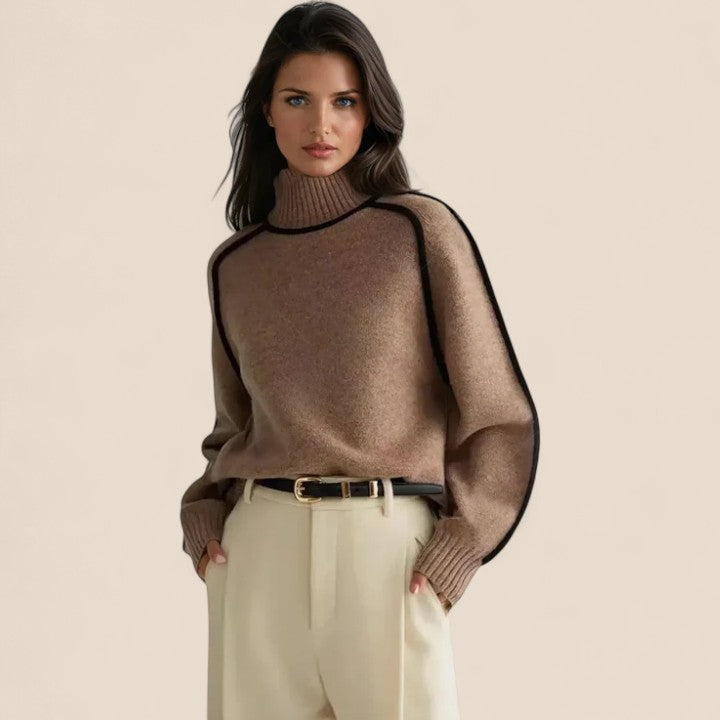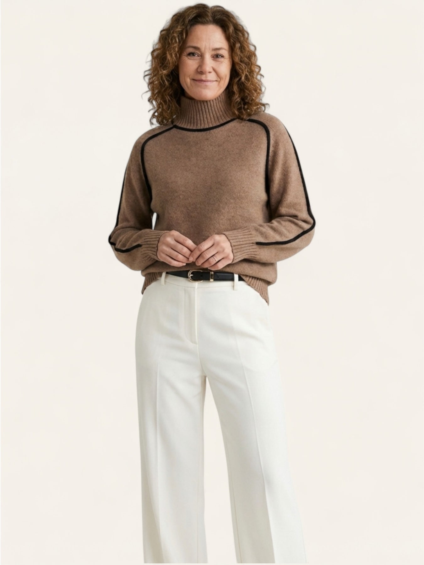Omgi deg med luksus og eleganse med Arabélle-genseren med høy hals, laget av førsteklasses chainette-stoff. Dette vinterens must-have gir uovertruffen mykhet og varme, perfekt for å møte de kalde dagene med eleganse og raffinement.
