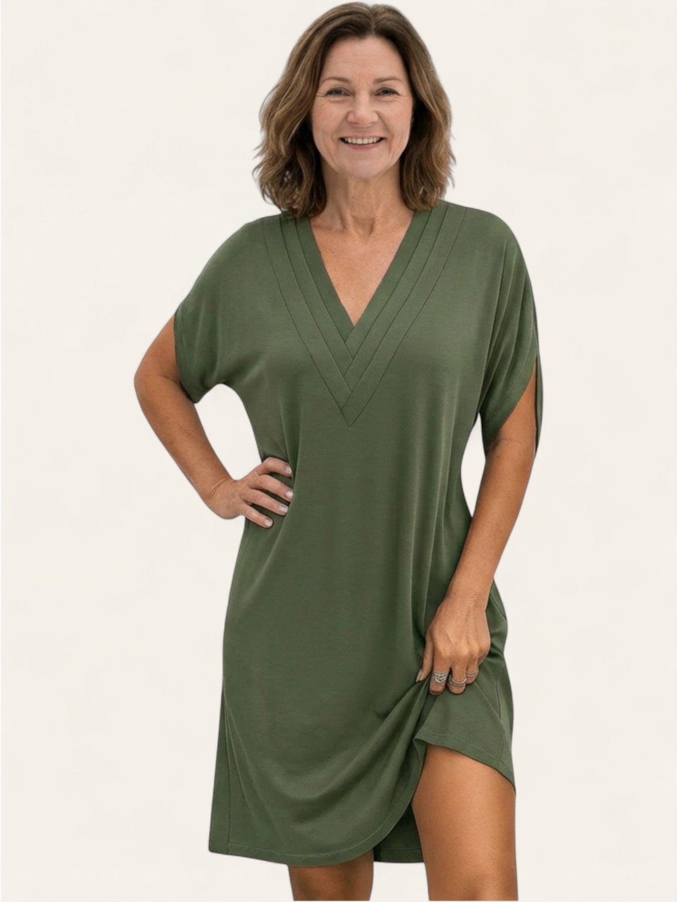 • Tidløs eleganse - Den ensfargede fargen og V-utringningen skaper et sofistikert og stilig uttrykk.