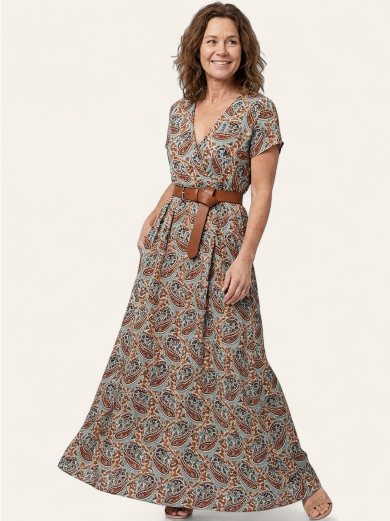 Det bohemske trykket, inspirert av solskinn og reiser, gir looken din et mykt, lysende og kunstnerisk preg. Det er en kjole som sier noe om deg, uten at du trenger å si noe.
