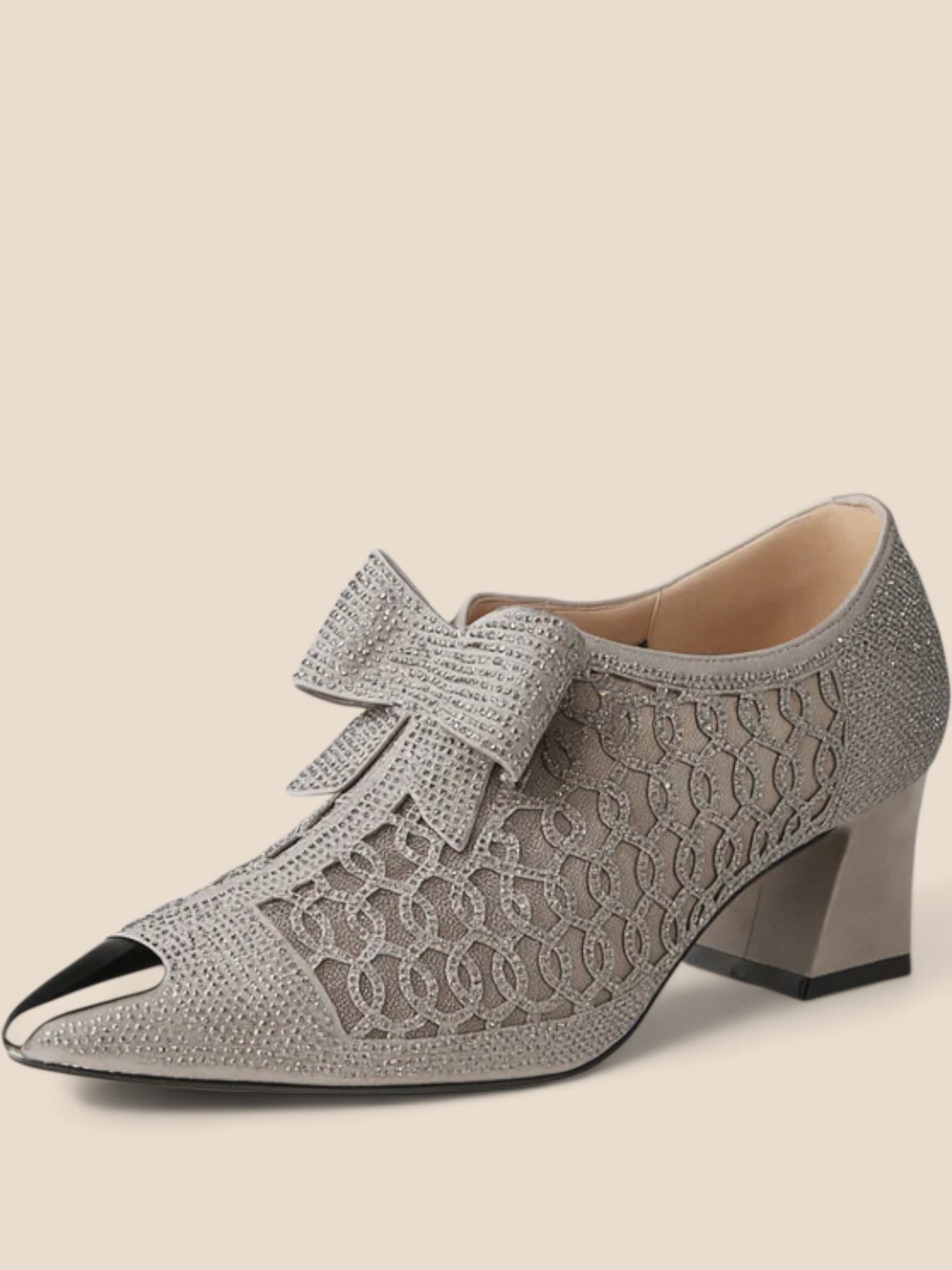 Anne er skoene som forener et kraftfullt design med delikate detaljer. Den markante silhuetten, den dekorative sløyfen og det gjennomførte mønsteret gjør dem til et plagg som virkelig skiller seg ut – perfekte når du ønsker å løfte antrekket med et snev av luksus.