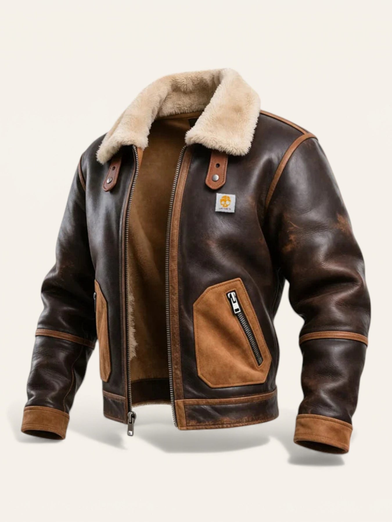 Edoardo | Varm jakke i brunt skinn med sherpa-krage