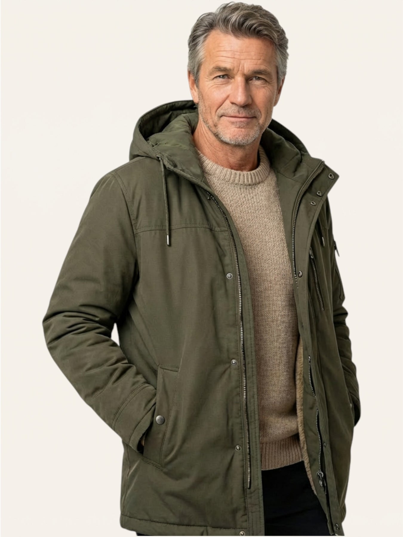 Denne herrenjakken med hette gir ultimat varme og komfort for de kalde månedene. Det praktiske designet med hette gir ekstra beskyttelse mot elementene, mens den polstrede strukturen holder deg varm. Jakken er perfekt for daglig bruk og tilbyr både funksjonalitet og stil.