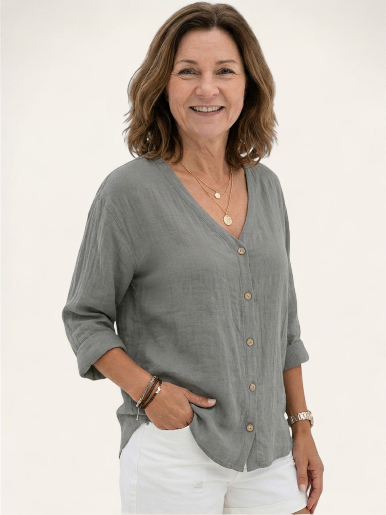 La garderoben din puste med den fineste blusen fra Alta-Atelier, et tidløst basisplagg som er designet for både avslappede dager og elegante anledninger. Med sin avslappede silhuett og elegante detaljer gir den en flatterende passform som faller mykt.